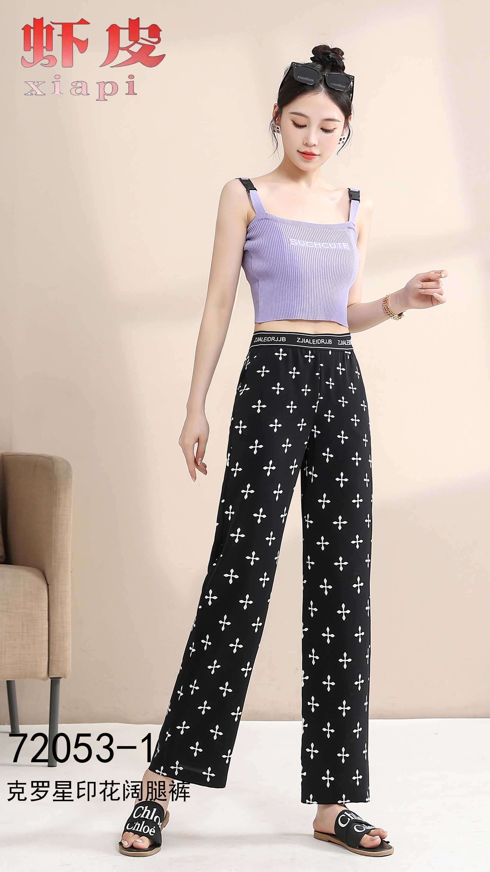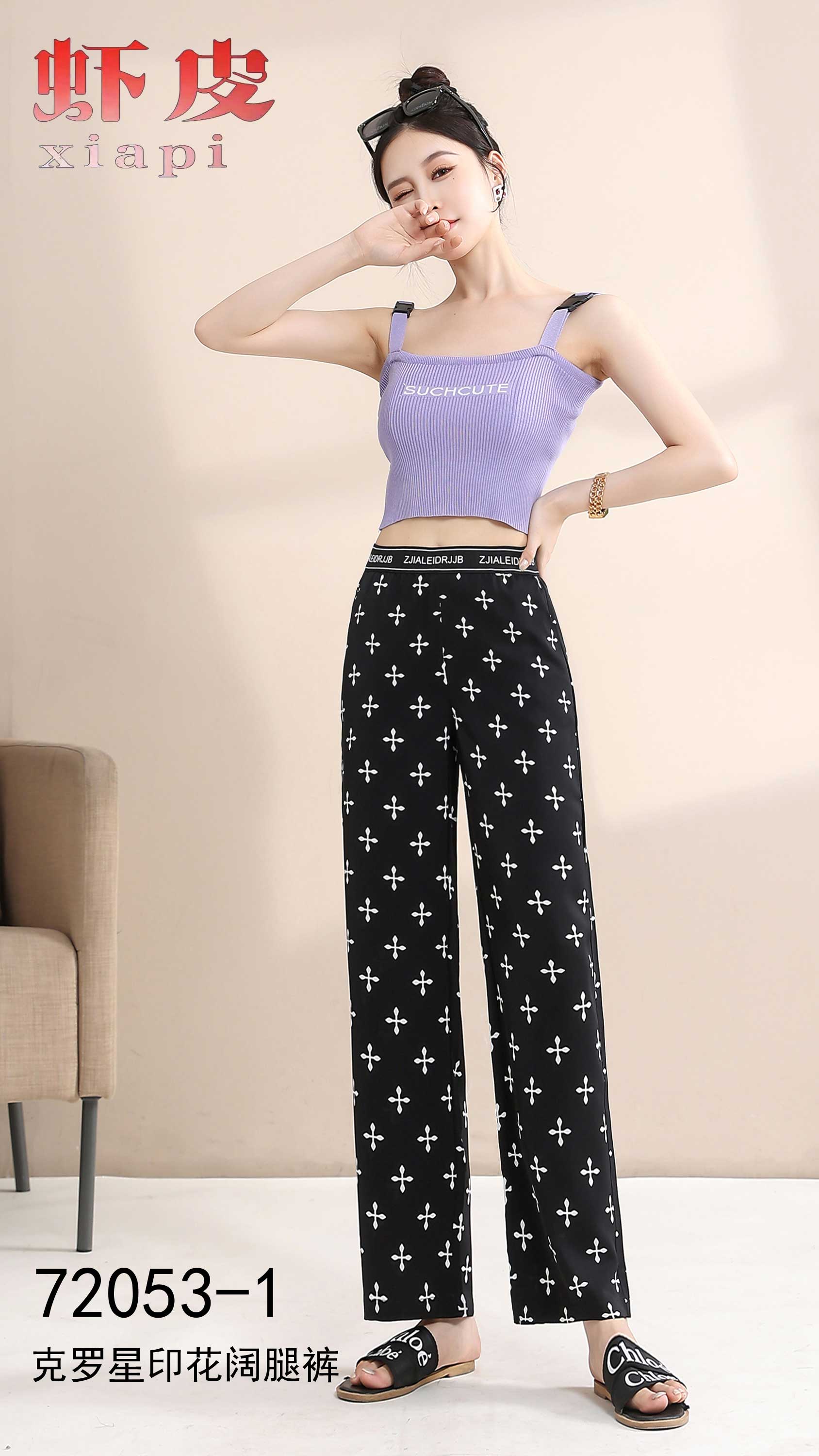 克罗心印花阔腿裤1