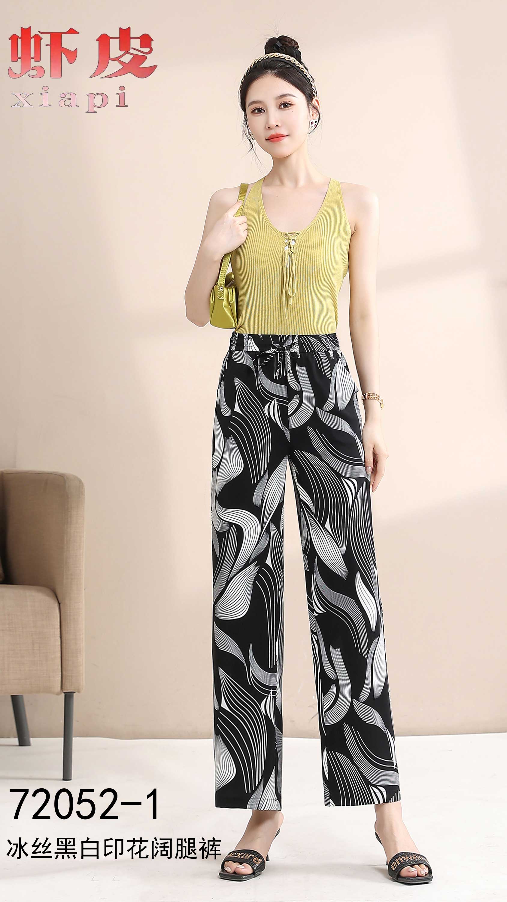 冰丝黑白印花阔腿裤1