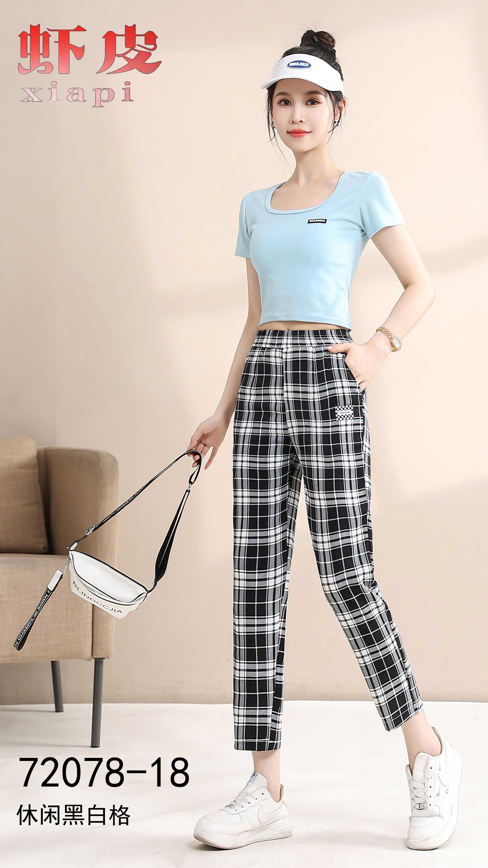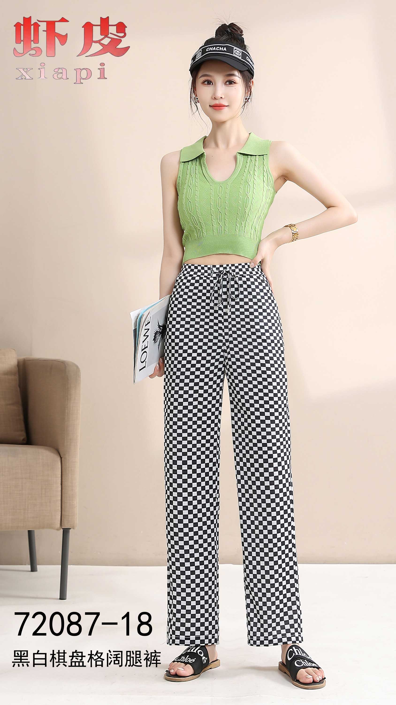 黑白棋盘格阔腿裤2